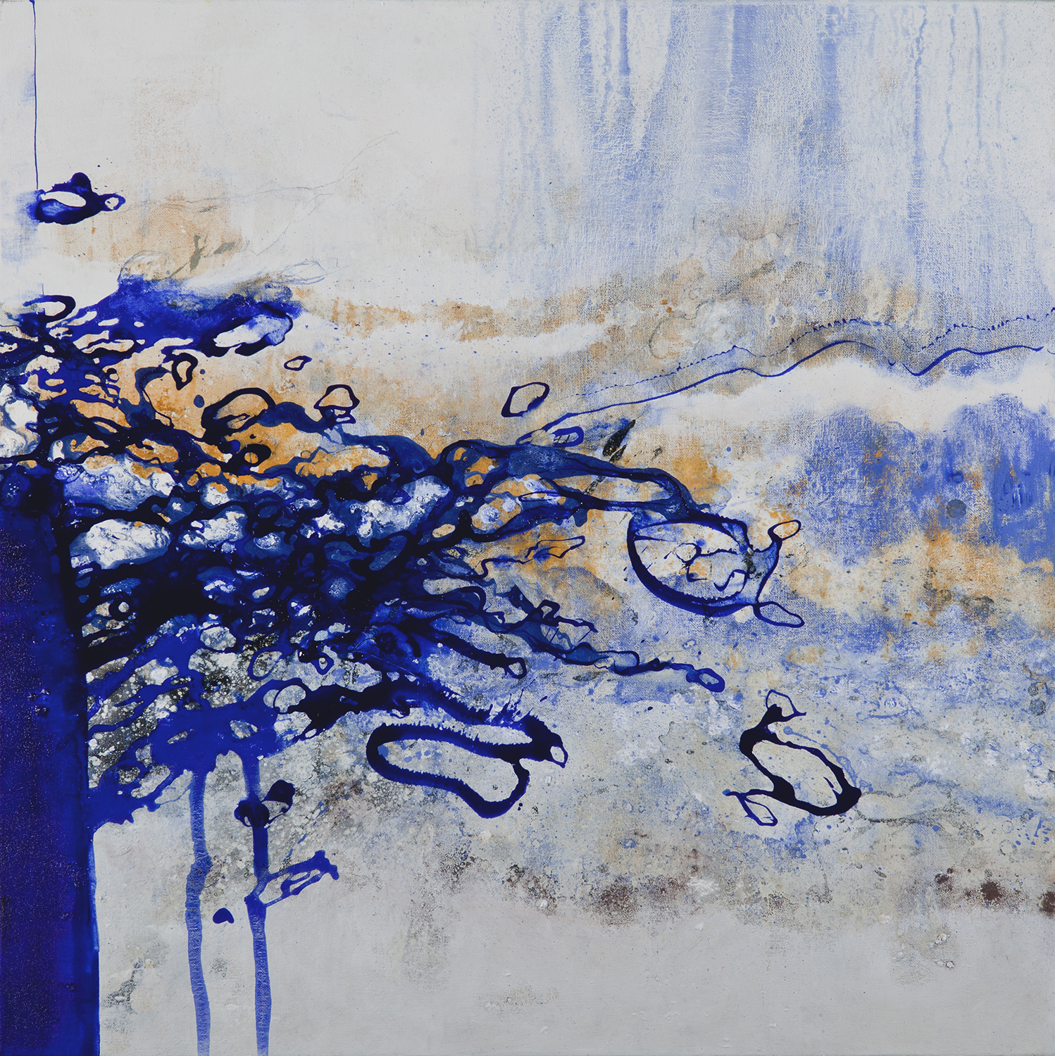 128 blaue wirklichkeiten acryl 100×100